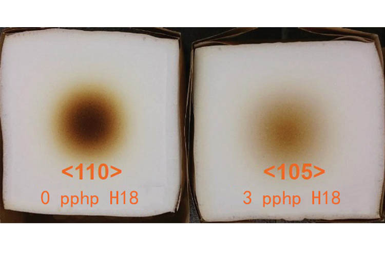 與市場(chǎng)上的其他硬化添加劑不同,nt add h18可顯著提高硬度,同時(shí)不影響泡沫的孔結(jié)構(gòu)。當(dāng)nt add h18添加到配方中時(shí),沒有必要改變tdi或錫的量來維持開孔結(jié)構(gòu)。使用量為1至5pphp,取決于所需的硬度增加。取決于泡沫密度,配方和生產(chǎn)參數(shù),可以在不顯著改變孔結(jié)構(gòu)的情況下提高35%的硬度。